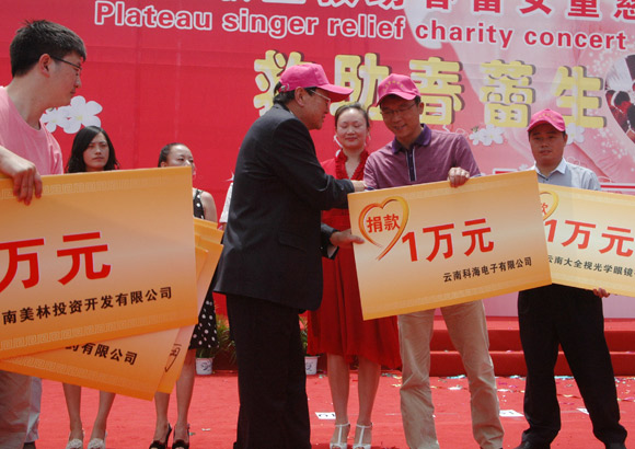 2011年9月6日下午,昆明市第十二中学七楼报告厅内爱心涌动,我市在这里隆重举行2011年贫困学生救助金发放仪式,对200名春蕾生予以资助。市委、市人大、市政府等领导莅会指导。云南科海电子有限公司作为捐赠单位受邀到场,与其它募捐企业共用一份爱撑起了一片天。