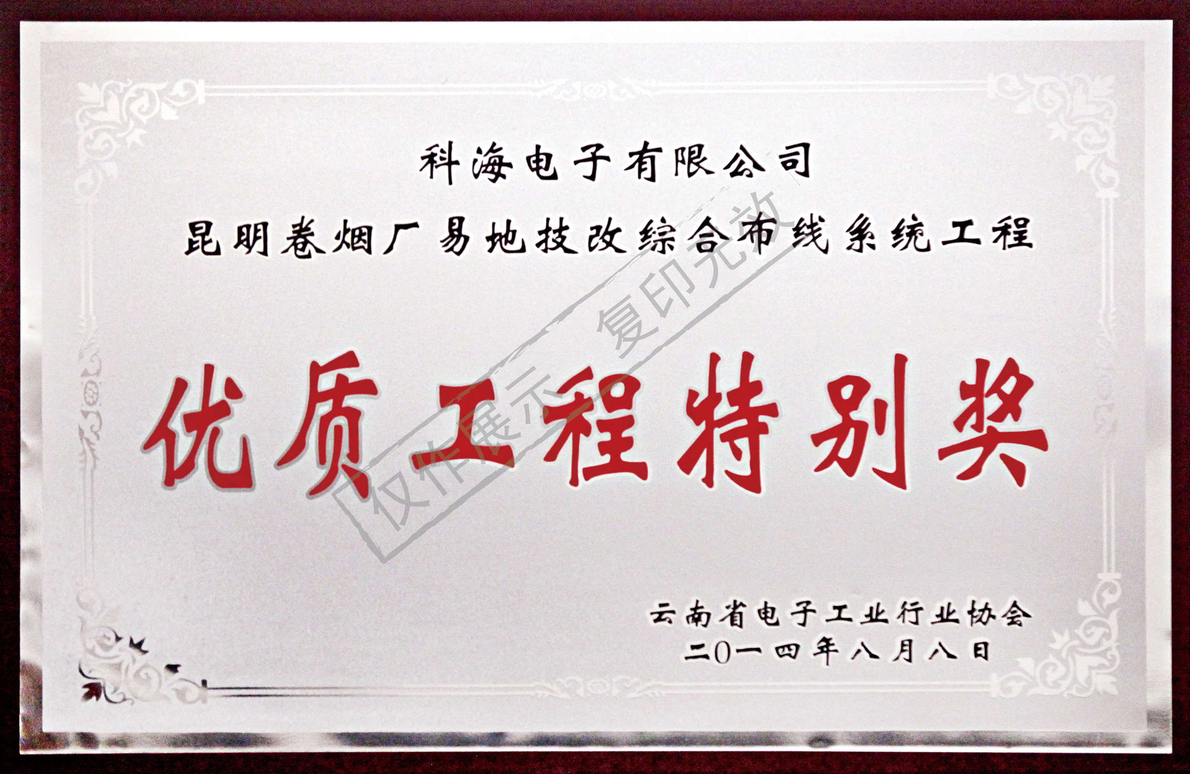 昆明烟厂易地技改优质工程特别奖