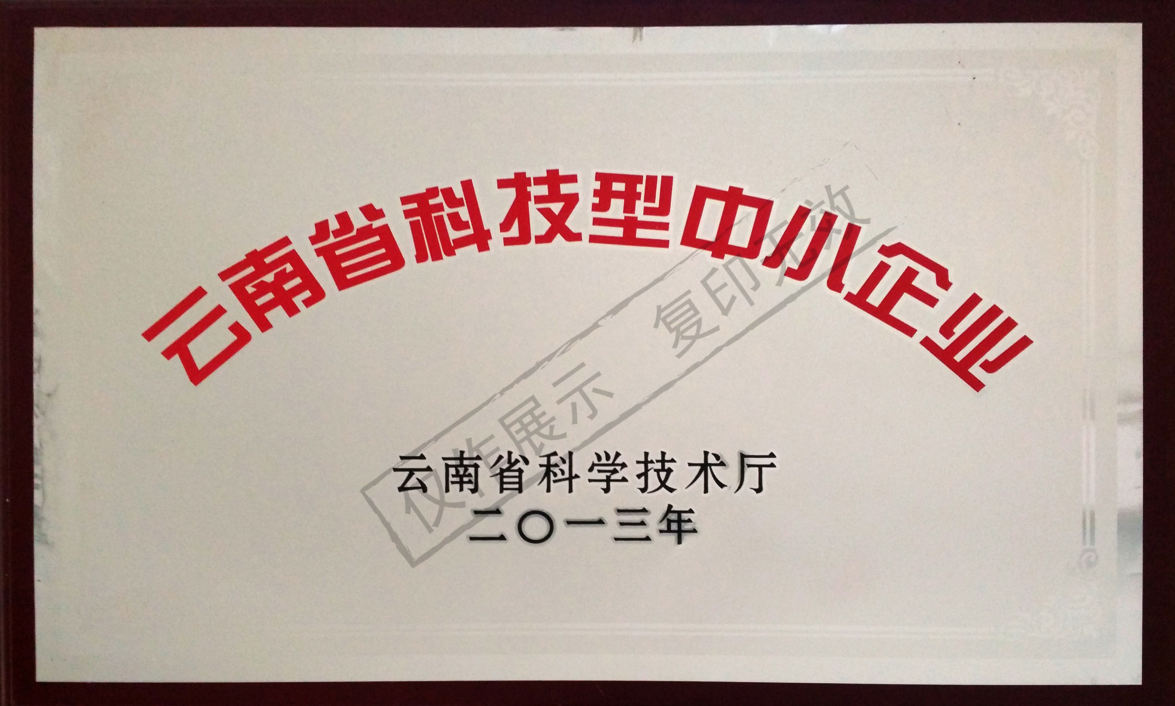 云南省科技型中小企业证书